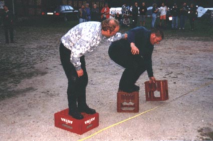 wurde) sein Geschick beim Bierkastenlauf im Zweierteam oder seine Kraft beim